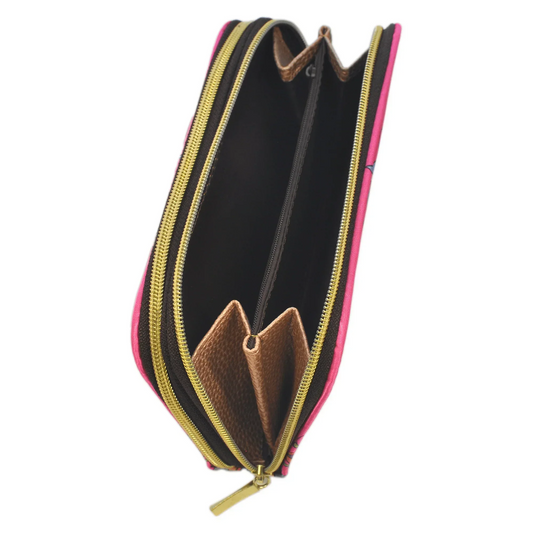 Billetera grande de mujer con doble cremallera Mándala rosa | CHULA Tulum