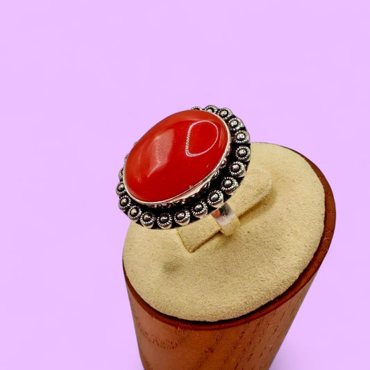 Anillo de Cornalina Ajustable de Plata 925 (Estilo Bali)