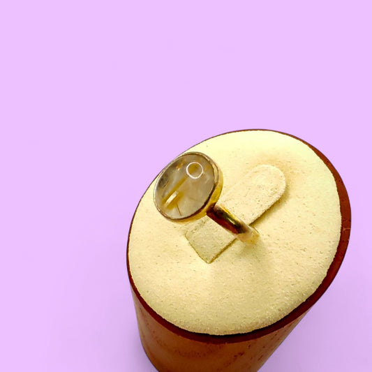 • Anillo ajustable de Plata 925 con Cuarzo Rutilado Dorado ovalado | Magicka Shop SKU ANIL-CRUT-PL-AJ