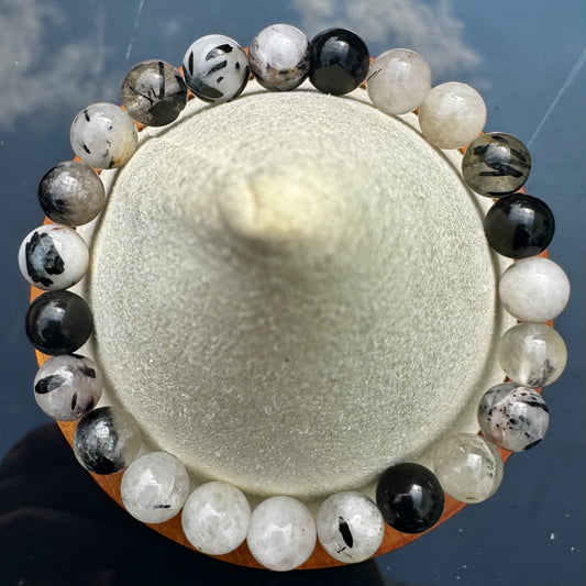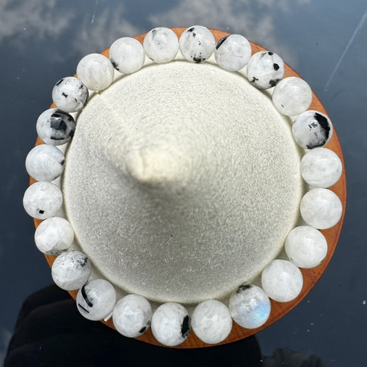 Pulsera de Piedra Luna Turmalinada - Bolas 8mm