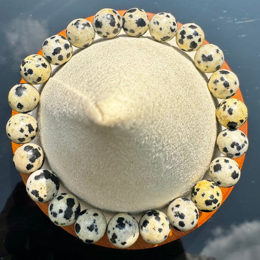• Pulsera elástica de Jaspe Dálmata (bolas 8mm) de Brasil - Alegría y Protección | Magicka Shop SKU PULS-JASPDALM-B8