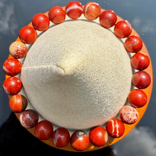 • Pulsera elástica de Jaspe Rojo (bolas 8mm) de Brasil - Vitalidad y Enraizamiento | Magicka Shop SKU PULS-JASPROJO-B8