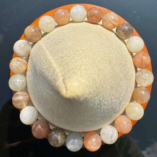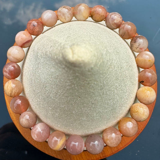 Pulsera de Piedra Luna Melocotón - Bolas 8mm