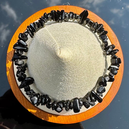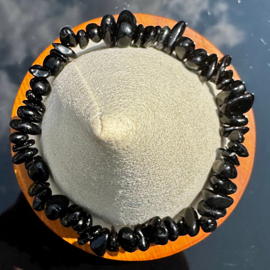 • Pulsera elástica de chips de Obsidiana Negra de México - Protección y Verdad | Magicka Shop SKU PULS-OBSI-CH