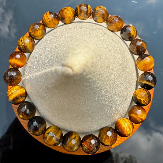 Pulsera de Ojo de Tigre Facetado - Bolas 8mm