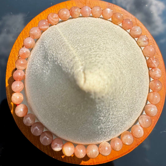 • Pulsera elástica de Piedra Luna Melocotón (bolas 8mm) de la India - Amor Propio y Calma | Magicka Shop SKU PULS-PLUNAMEL-B8