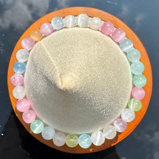 Pulsera de Selenita Arcoíris - Bolas 6mm