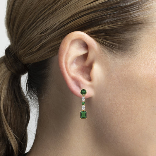Pendientes con Circonita Esmeralda acabado oro 18k - Layzy