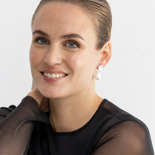 Pendientes con Perla Blanca acabado oro 18k - Pacezu