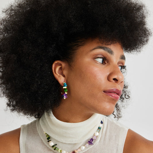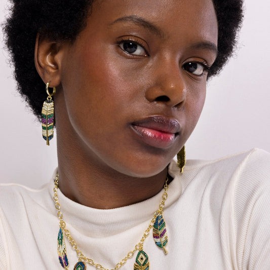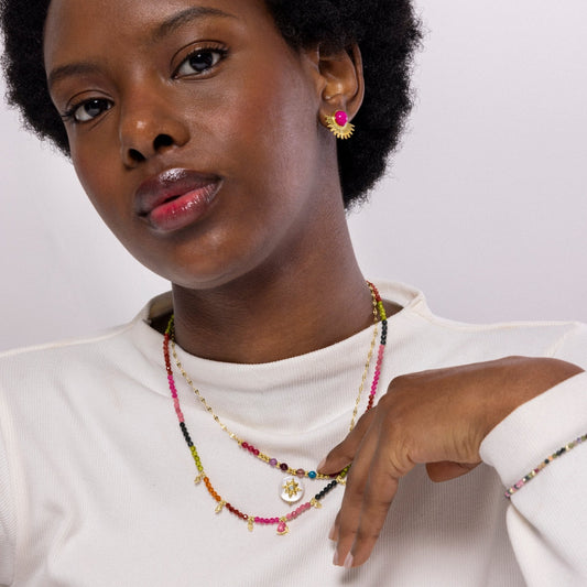Pendientes con Circonita Multicolor acabado oro 18k - Habyo
