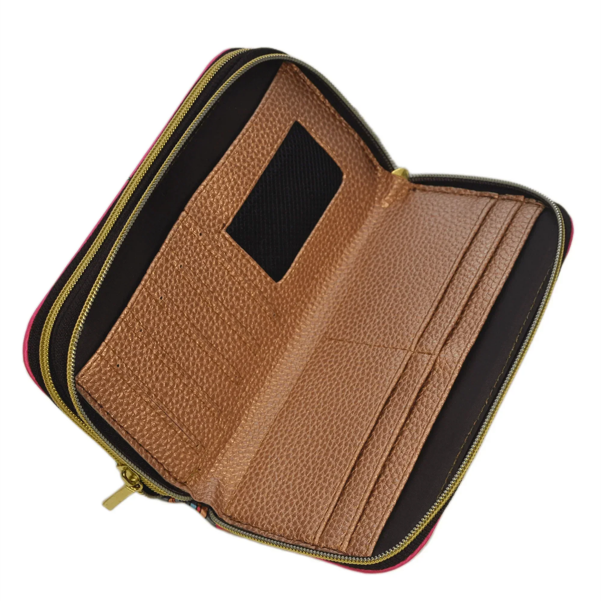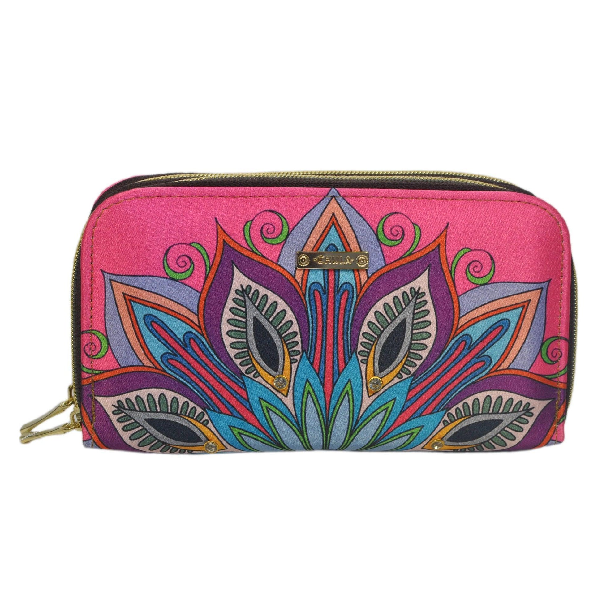 Billetera grande de mujer con doble cremallera Mándala rosa | CHULA Tulum