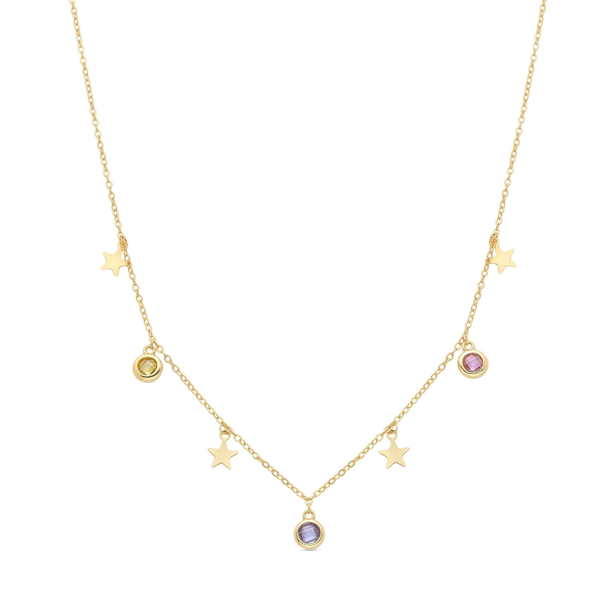 Collar Sunah de Circonita Multicolor acabado en baño de oro amarillo de 18 quilates. África Basic encarna la sencillez refinada, piezas atemporales con líneas suaves y el brillo adicional de las circonitas. Joyas básicas sin pretensiones que son perfectas para el uso diario, pero también pueden funcionar en ocasiones especiales.