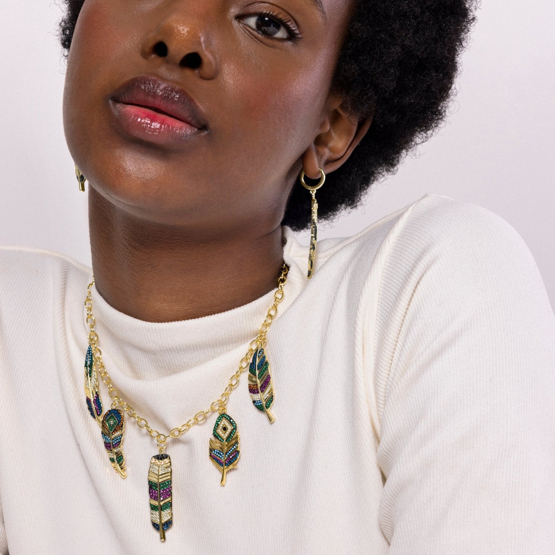 Collar de metal Muisem de Circonita Multicolor acabado en oro amarillo de 18k. El estilo Boho es una estética de espíritu libre que mezcla diferentes culturas y expresiones artísticas en un estilo ecléctico con énfasis en los elementos orgánicos y la naturaleza.