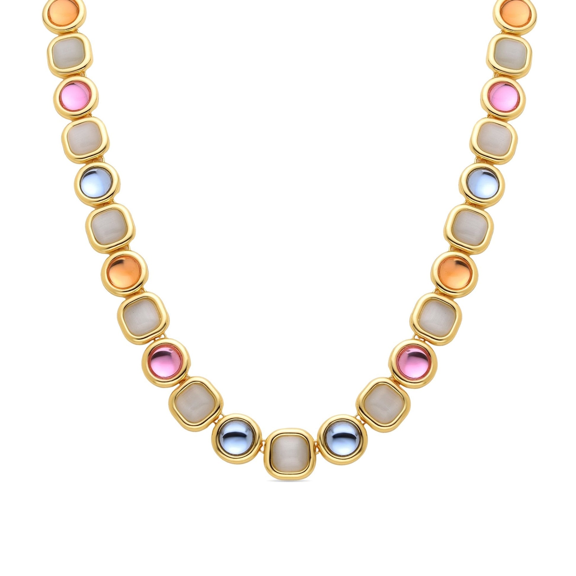 Collar Mantis de Cristal Multicolor acabado en oro amarillo de 18K. África se convierte en la línea perfecta para mujeres con personalidad, que no temen arriesgar y lucir piezas con carácter propio.