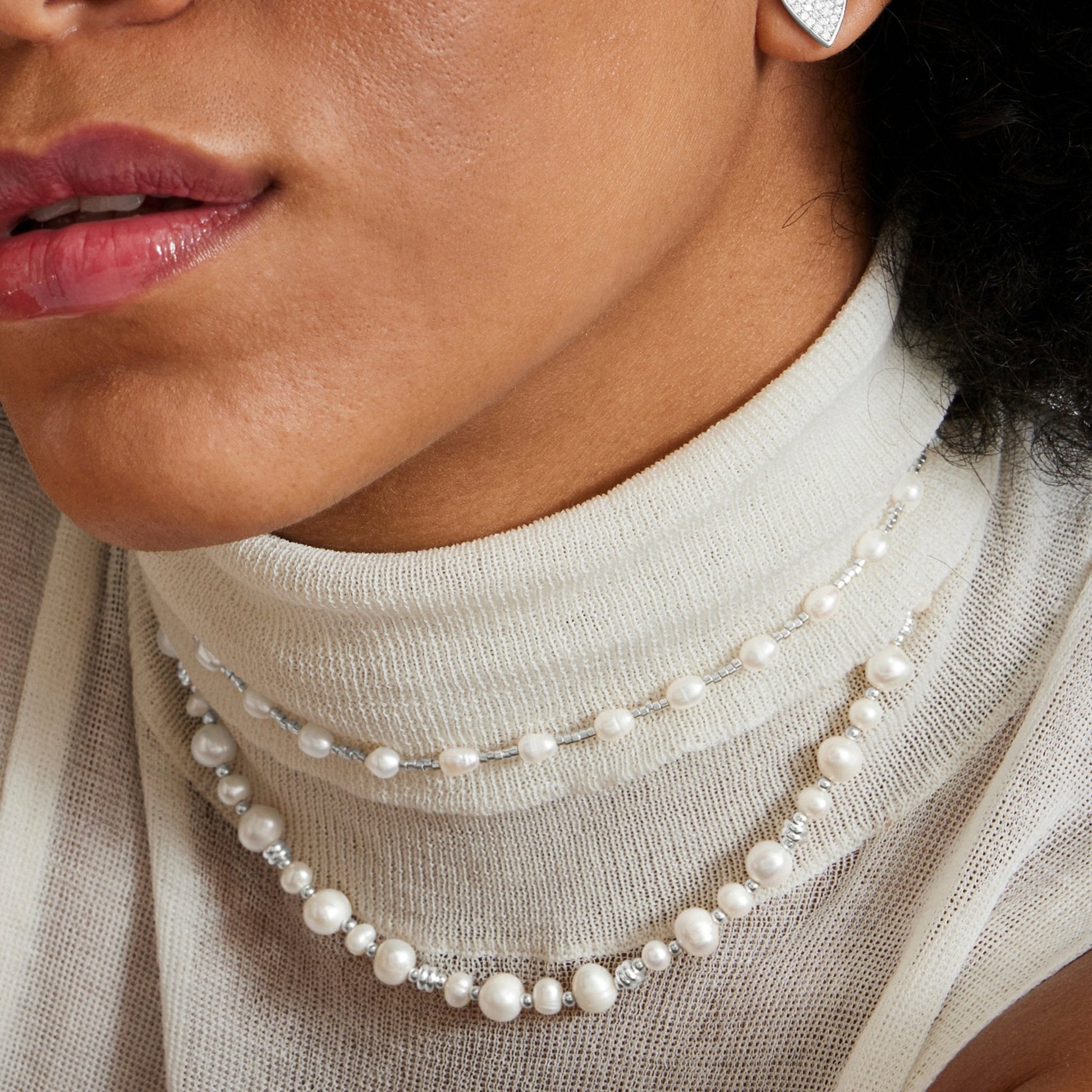 Collar Gafyre de Perla Blanca acabado plata. África Moda te sumerge en un mundo de colores vibrantes, texturas exquisitas y diseños artesanales que reflejarán la esencia de tu espirítu.