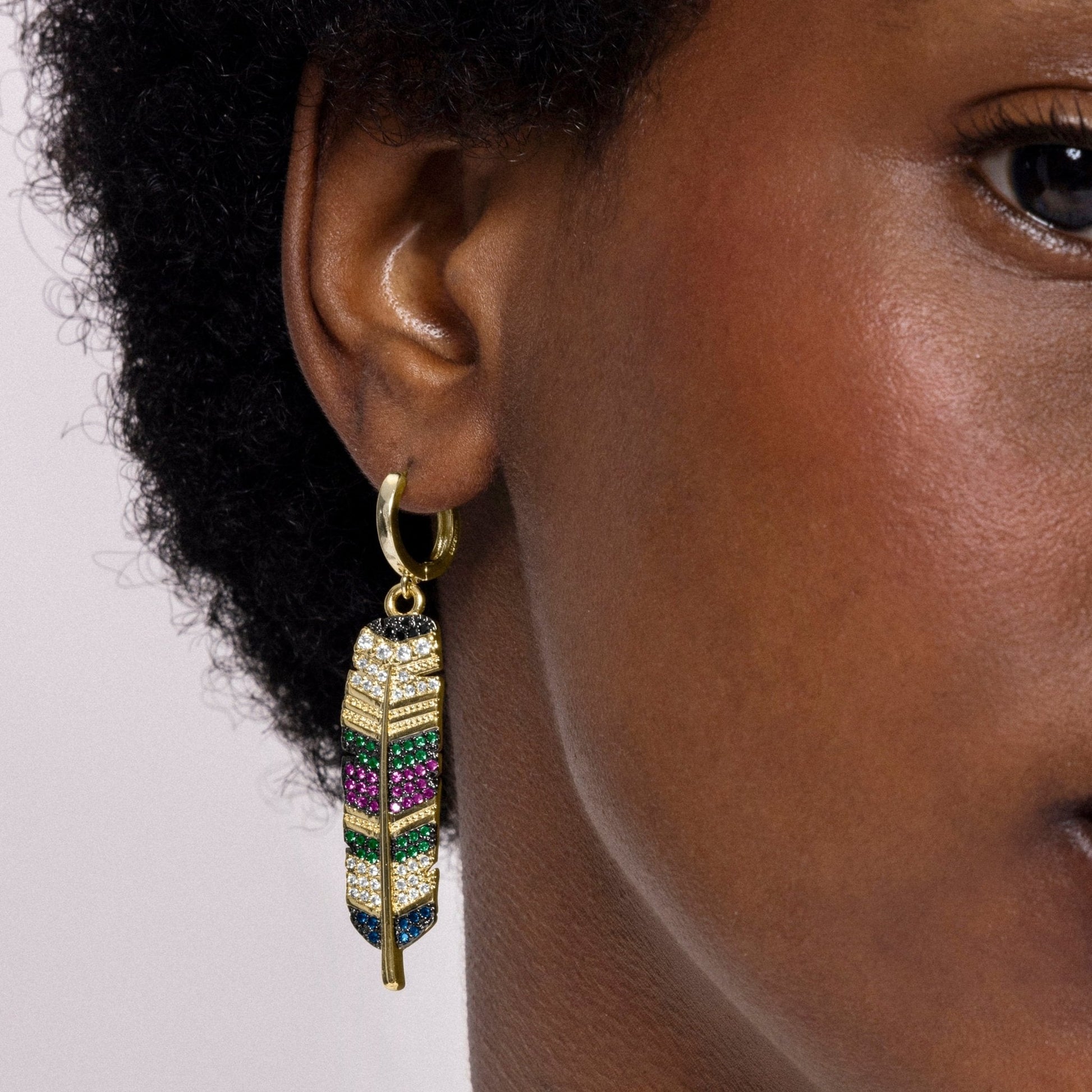 Pendientes de metal Muisem de Circonita Multicolor acabado en oro amarillo de 18k. El estilo Boho es una estética de espíritu libre que mezcla diferentes culturas y expresiones artísticas en un estilo ecléctico con énfasis en los elementos orgánicos y la naturaleza.