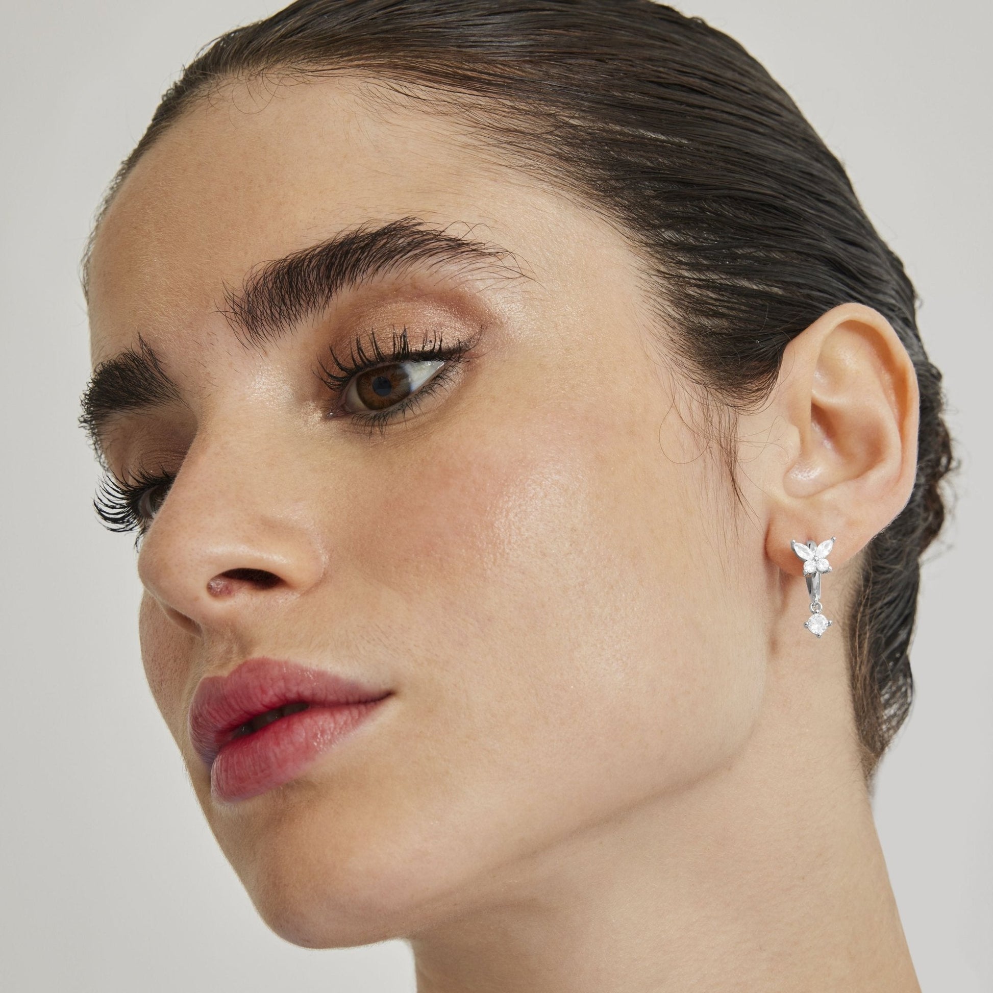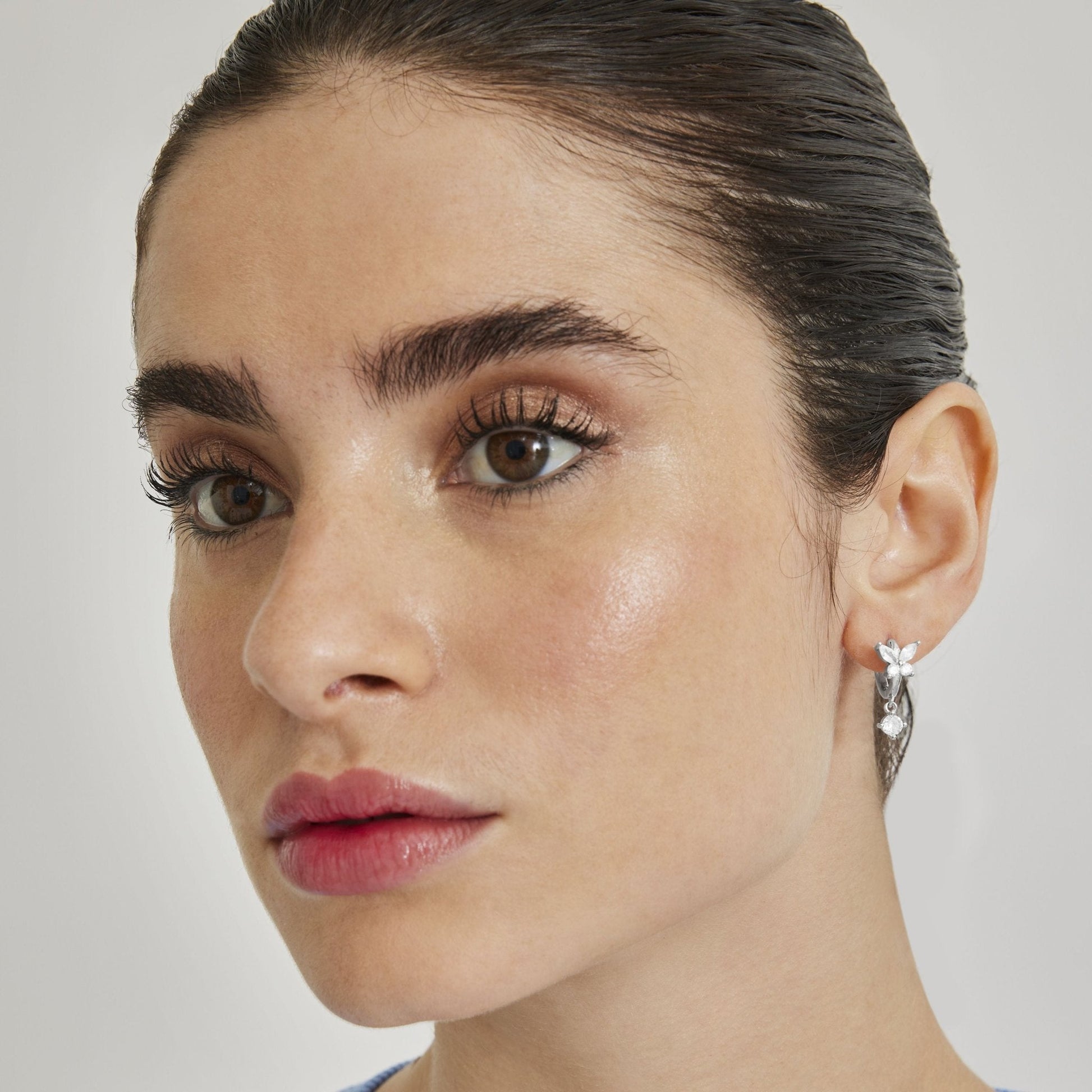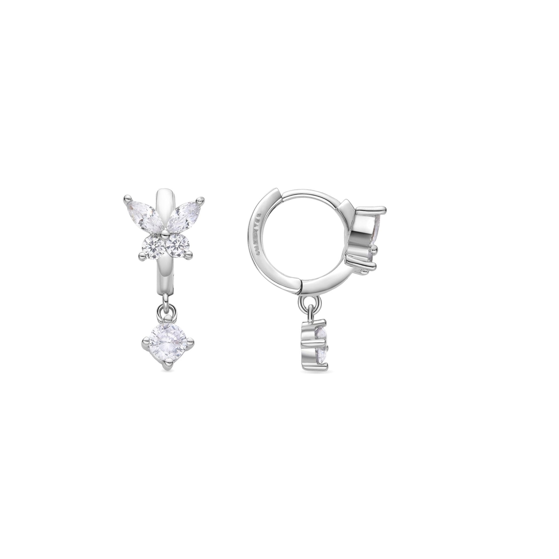 Pendientes Rakga de Circonita Brillante acabados en baño de rodio. África Basic encarna la sencillez refinada, piezas atemporales con líneas suaves y el brillo adicional de las circonitas. Joyas básicas sin pretensiones que son perfectas para el uso diario, pero también pueden funcionar en ocasiones especiales.