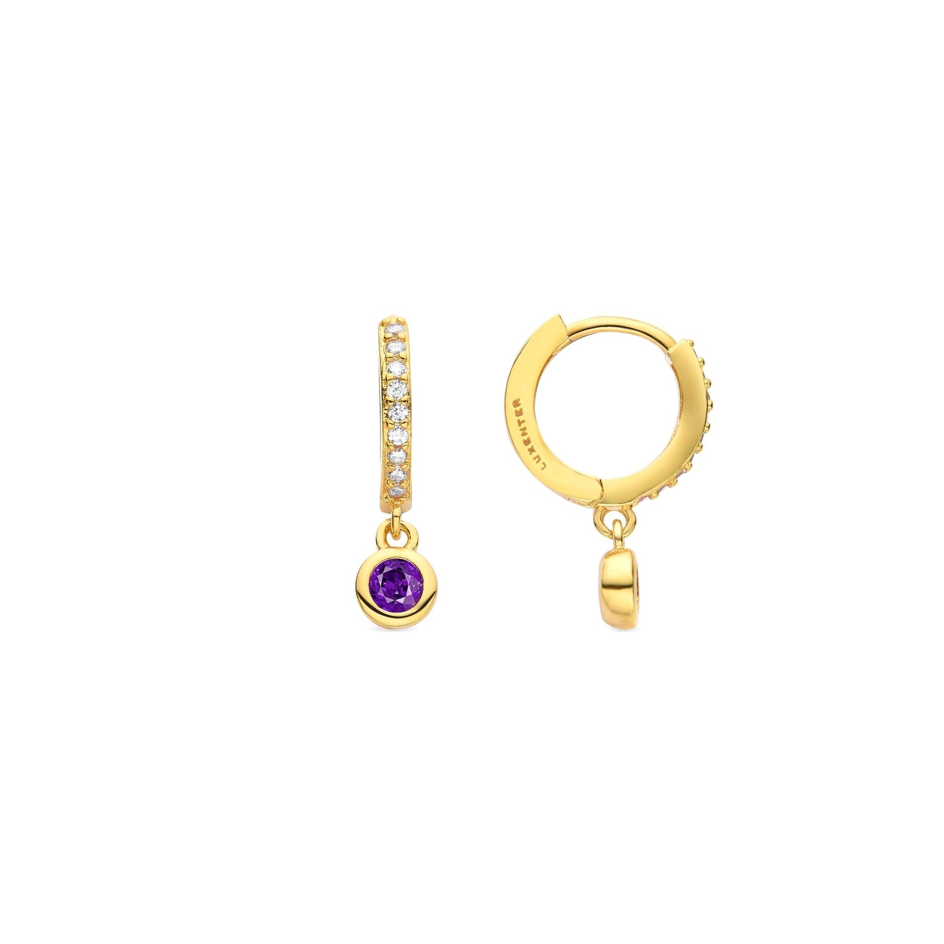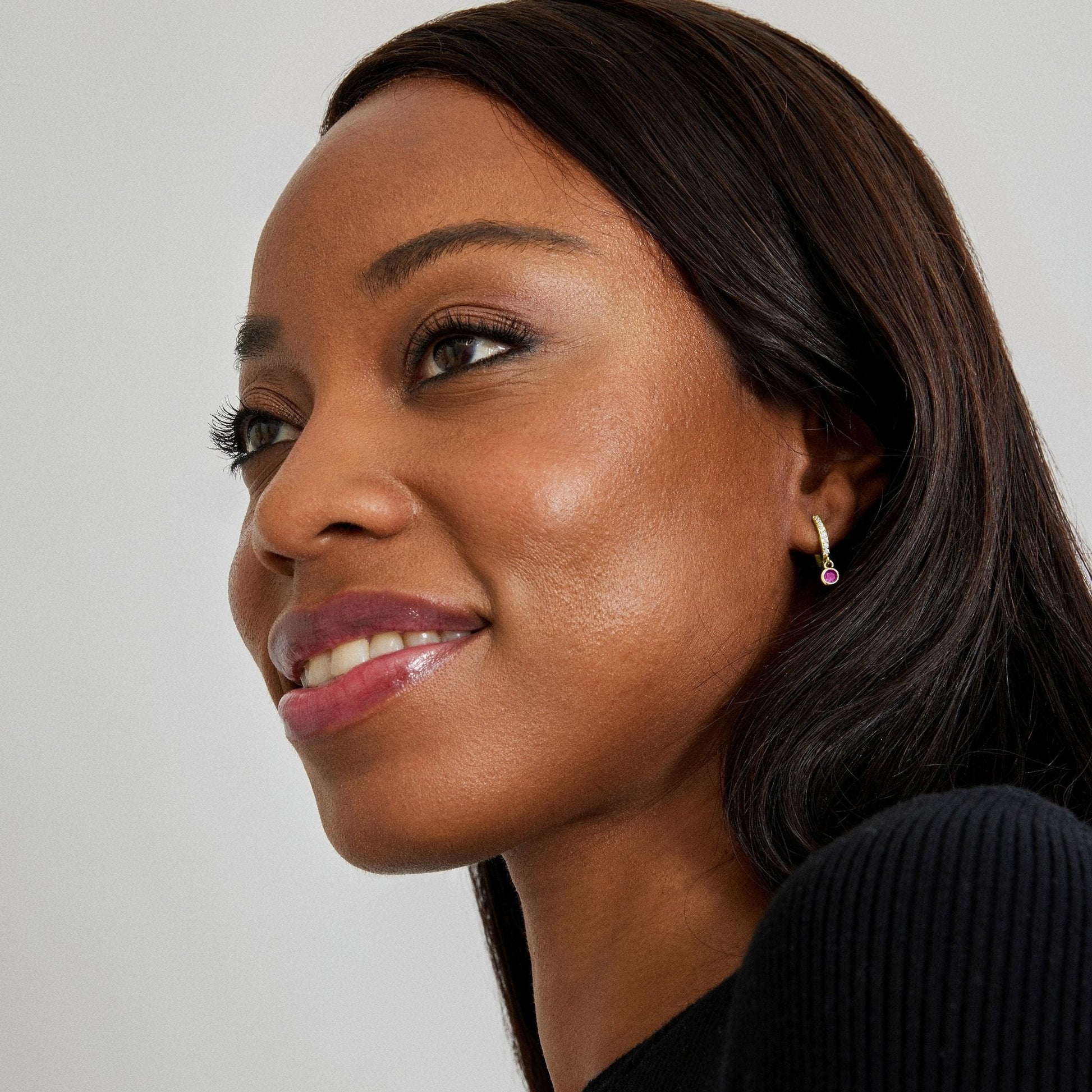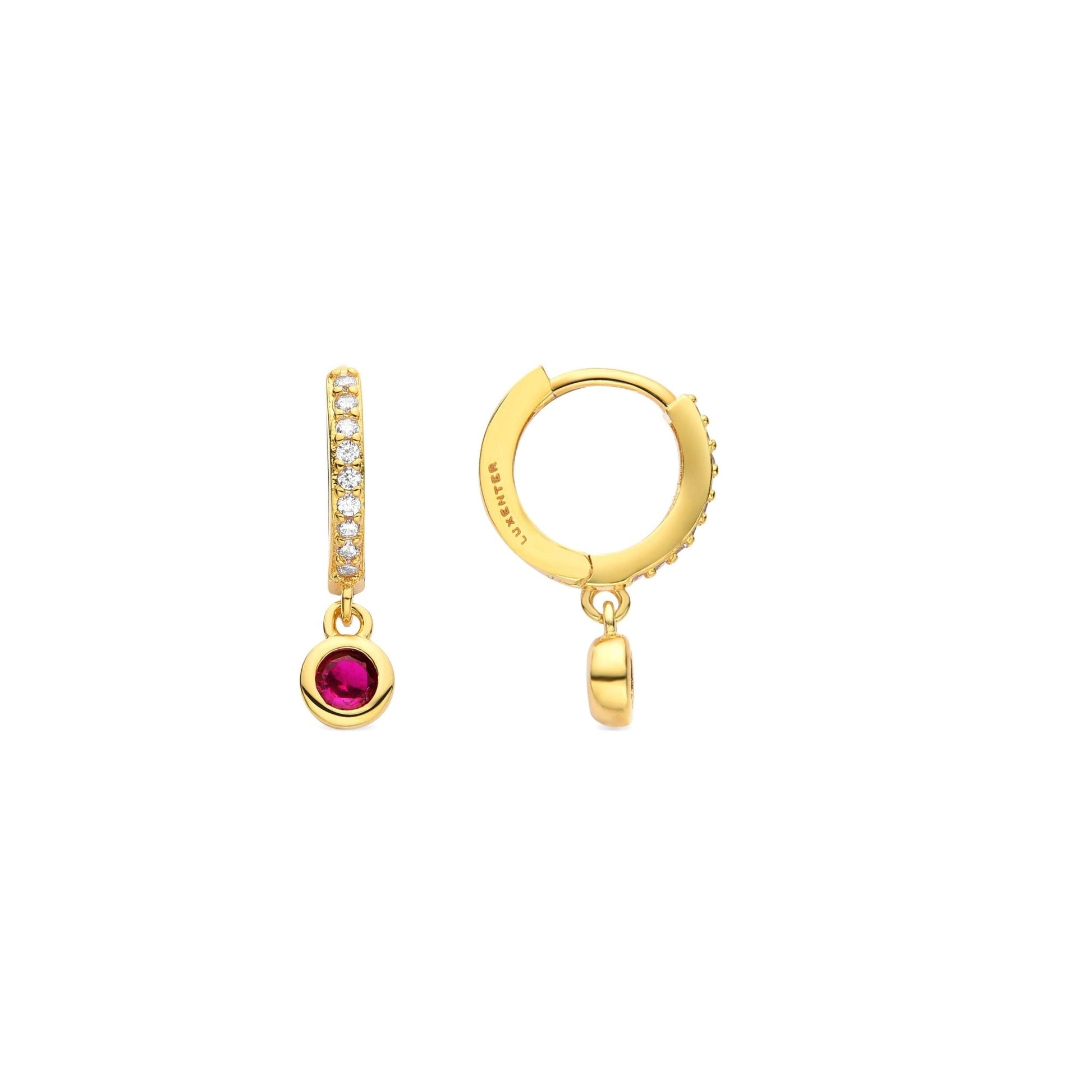 Pendientes Warlah de Circonita Rubí acabados en baño de oro amarillo de 18 quilates. África Basic encarna la sencillez refinada, piezas atemporales con líneas suaves y el brillo adicional de las circonitas. Joyas básicas sin pretensiones que son perfectas para el uso diario, pero también pueden funcionar en ocasiones especiales.
