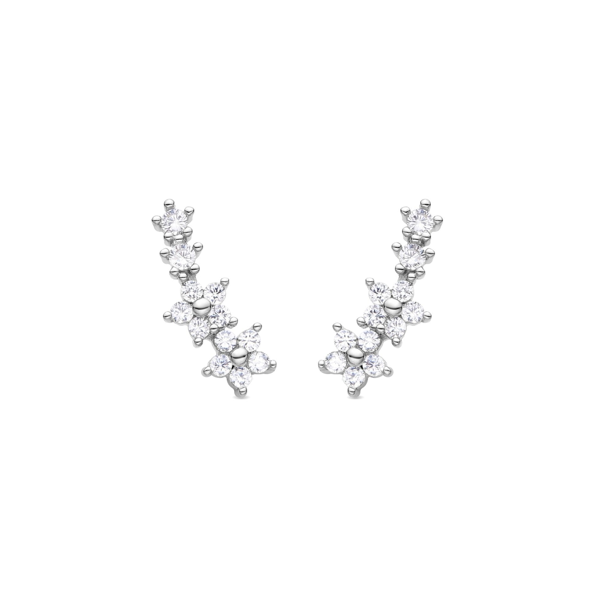 Pendientes Olea de Circonita Brillante acabado plata. África Basic encarna la sencillez refinada, piezas atemporales con líneas suaves y el brillo adicional de las circonitas. Joyas básicas sin pretensiones que son perfectas para el uso diario, pero también pueden funcionar en ocasiones especiales.