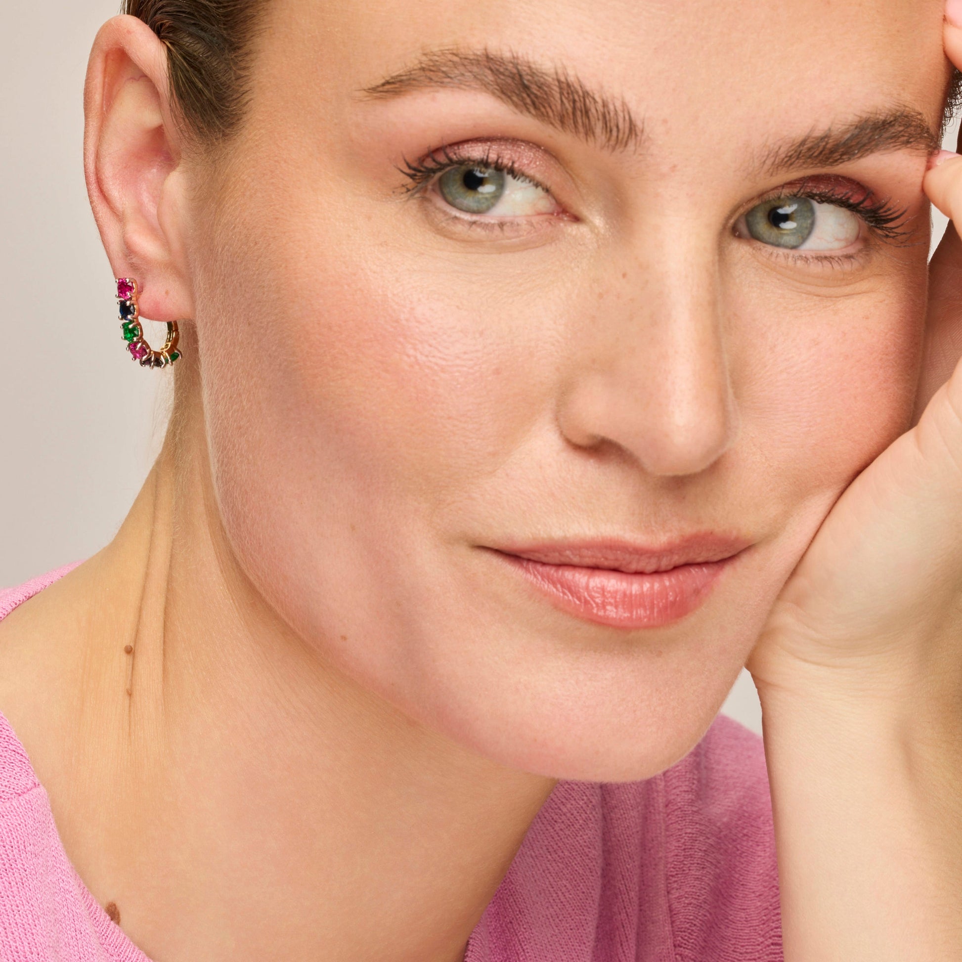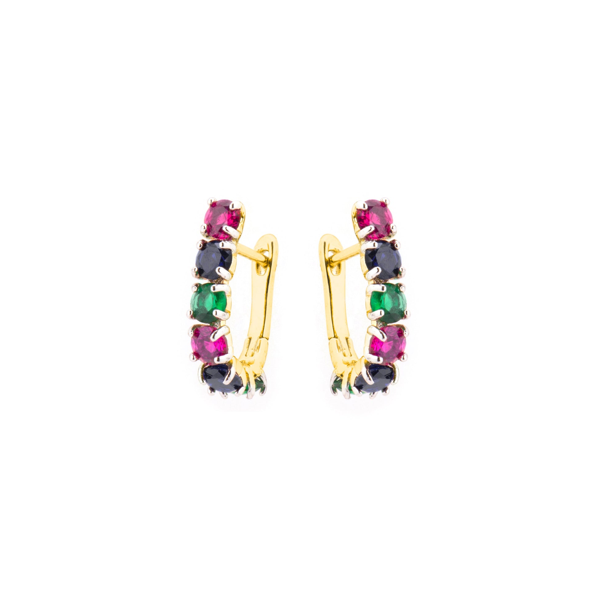 Pendientes con Circonita Multicolor acabado oro 18k - Mehru