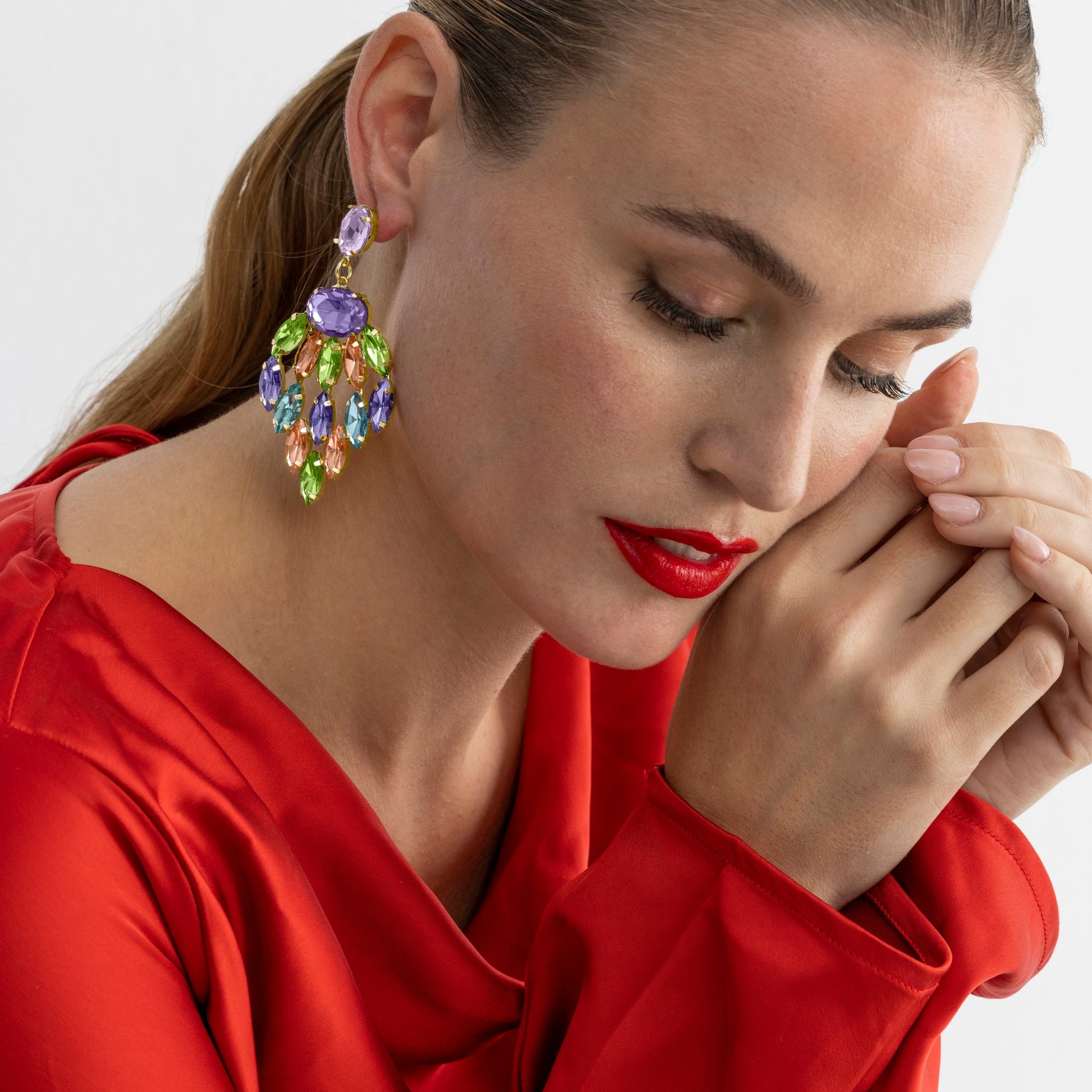 Pendientes Imkas con Cristal Multicolor acabado oro 18k. LuxbyLux Africa se convierte en la línea perfecta para mujeres con personalidad, que no temen arriesgar y lucir piezas con carácter propio.