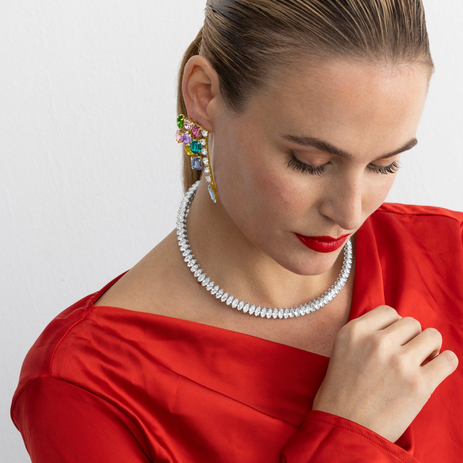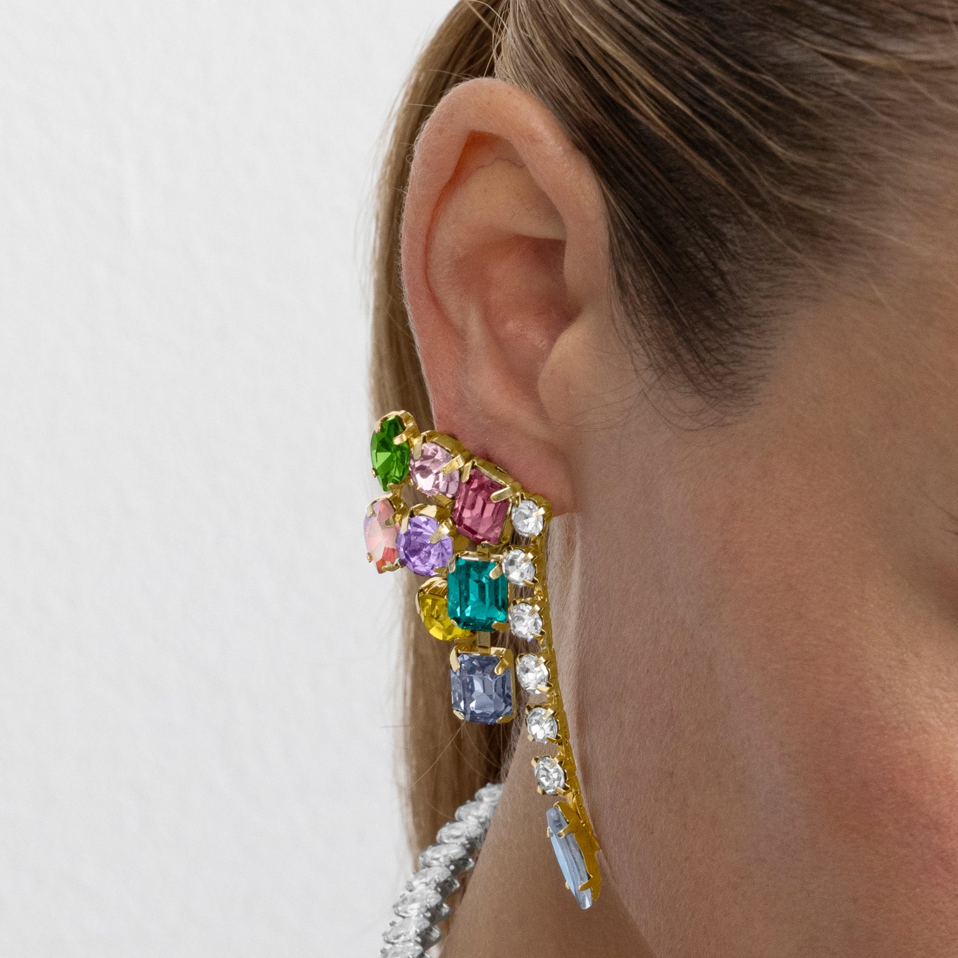 Pendientes Shamwa con Cristal Multicolor acabado oro 18k. LuxbyLux Africa se convierte en la línea perfecta para mujeres con personalidad, que no temen arriesgar y lucir piezas con carácter propio.