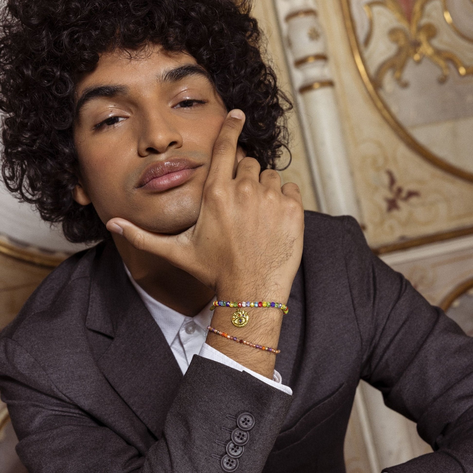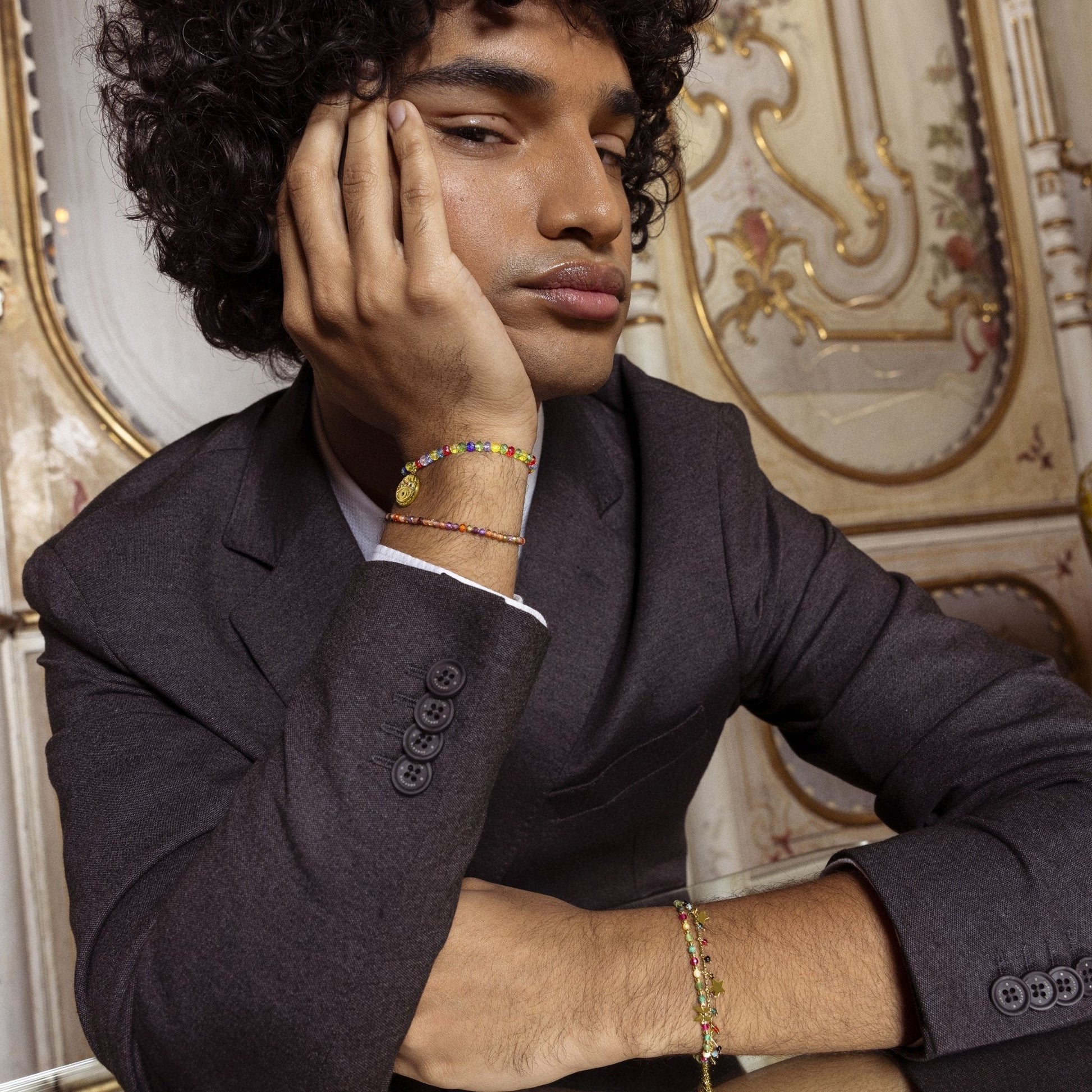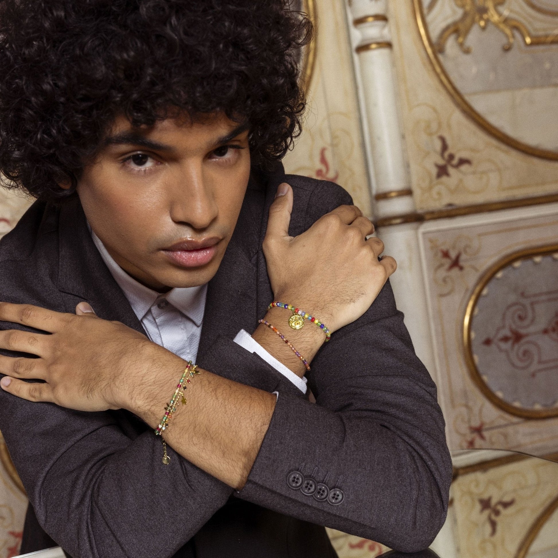 Pulsera Targey de Cristal Multicolor acabado oro 18k. África Moda te sumerge en un mundo de colores vibrantes, texturas exquisitas y diseños artesanales que reflejarán la esencia de tu espirítu.