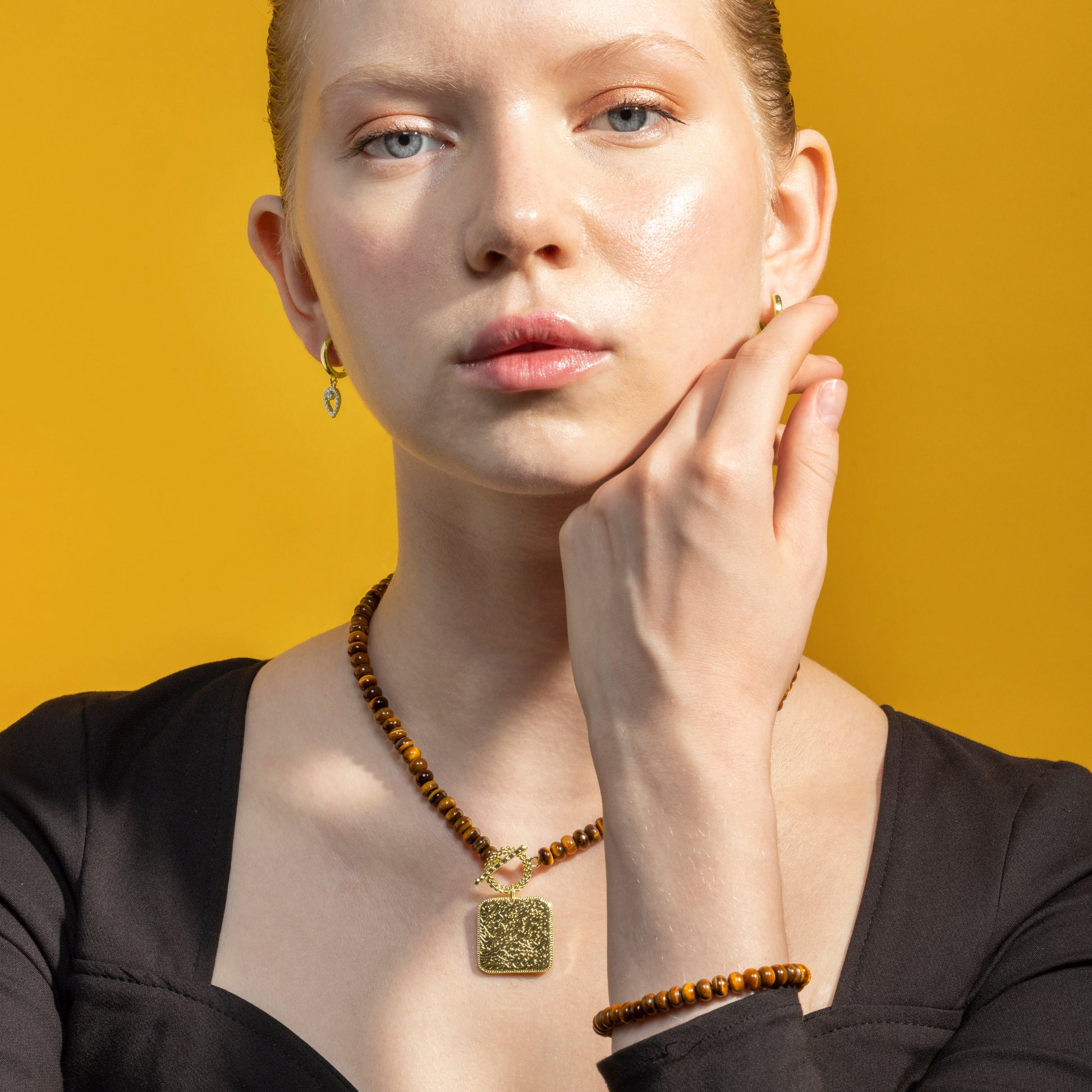 Pulsera con Ojo de Tigre acabado oro 18k - Lessy